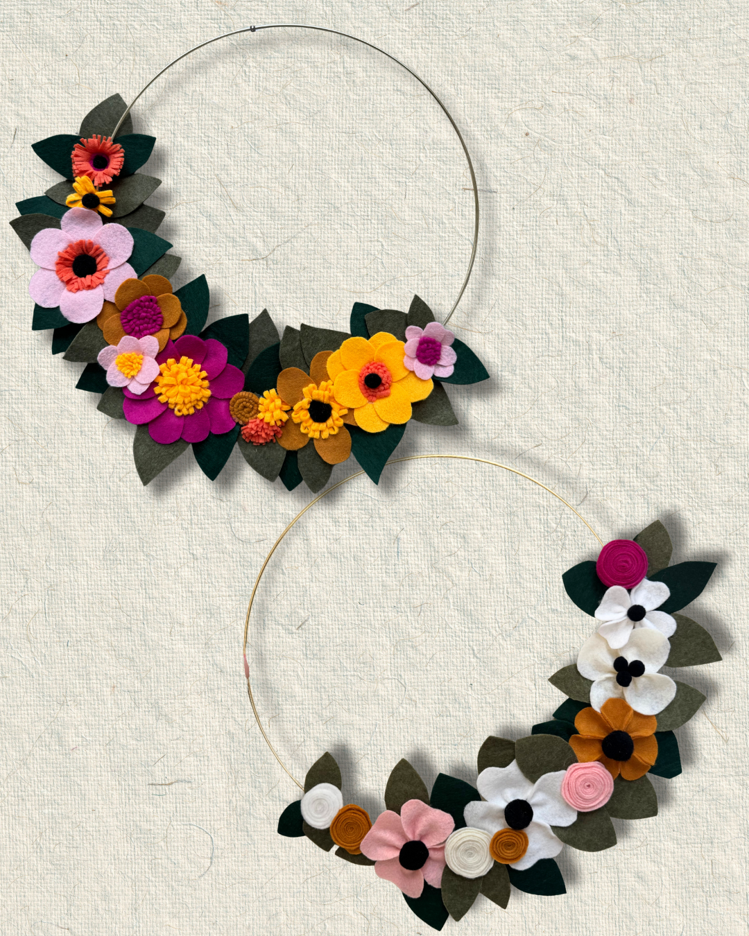 Learn to make these beautiful and colorful felt flower wreaths! Wine, beer, n/a drinks, savory and sweet snacks included.